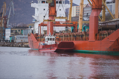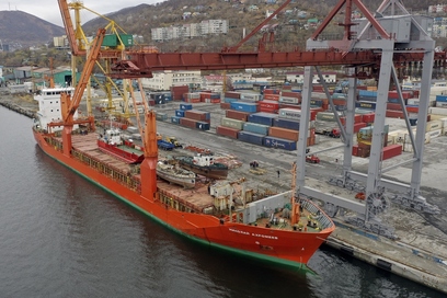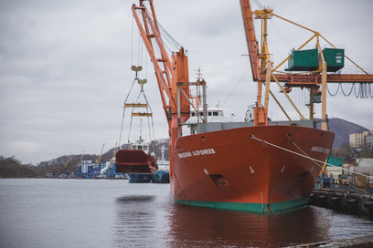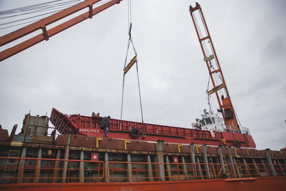 На борту сухогруза «Николай Ахромеев» в Камчатский край прибыли баржа и сборные конструкции для строительства дома в селе Никольском Алеутского района.